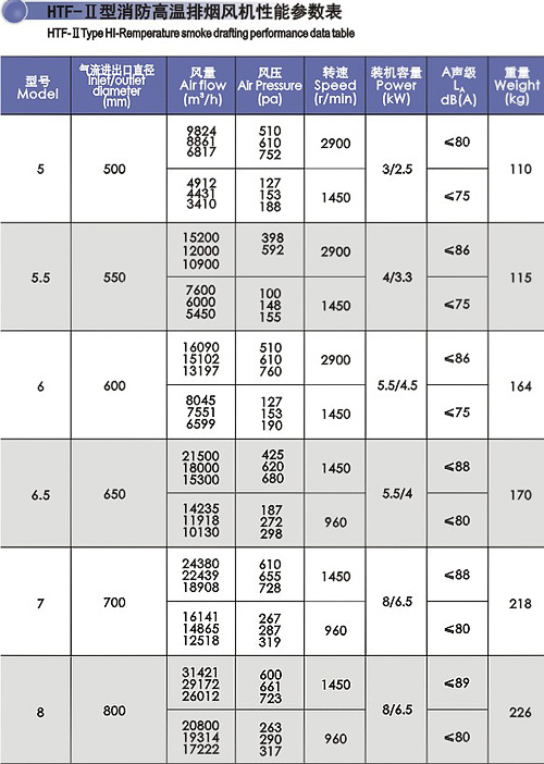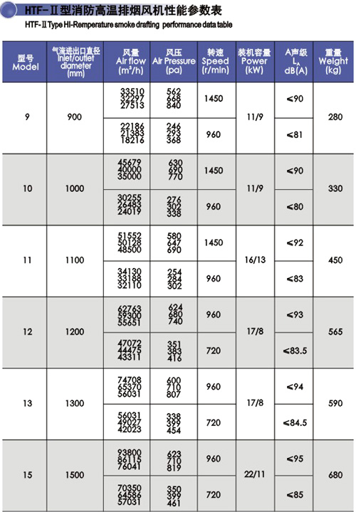 | HTF系列消防高温排烟风机由上海交通大学、金年会风机厂共同研制开发,其特点有:①耐高温性能优良(在400℃高温条件下可以连续运行100分钟以上,100℃温度条件下连续运行20小时不损坏);②适用范围广根据高级民用建筑的不同要求,采用变速或多速驱动形式,以达到一机二用,即常用通排风和消防使用时高温排烟的目的);③效率高;④安装方便,占地较离心风机小。 该系列风机已荣获国家级“星火”奖,获国家专利证书,浙江省技术进步奖等。 |
